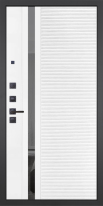 Гранит Бриони – предназначена для монтажа в квартирах и укомплектована по всем современным стандартам. Снаружи мы видим МДФ панель, подним расположен лист стали, далее идут ребра жесткости, затем внутренняя МДФ панель. Для шумоизоляции используется два слоя наполнителя: базальтовая плита Sound Guard и минеральная вата Isover. В дверь врезаны два замка фирмы Гардиан и задвижка "ночной сторож". Установлена врезная броненакладка. В комплекте поставляется широкоугольный глазок. Полотно крепится к дверной коробке через три петли, со стоны петель на полотне установлены пять противосъемных штырей.